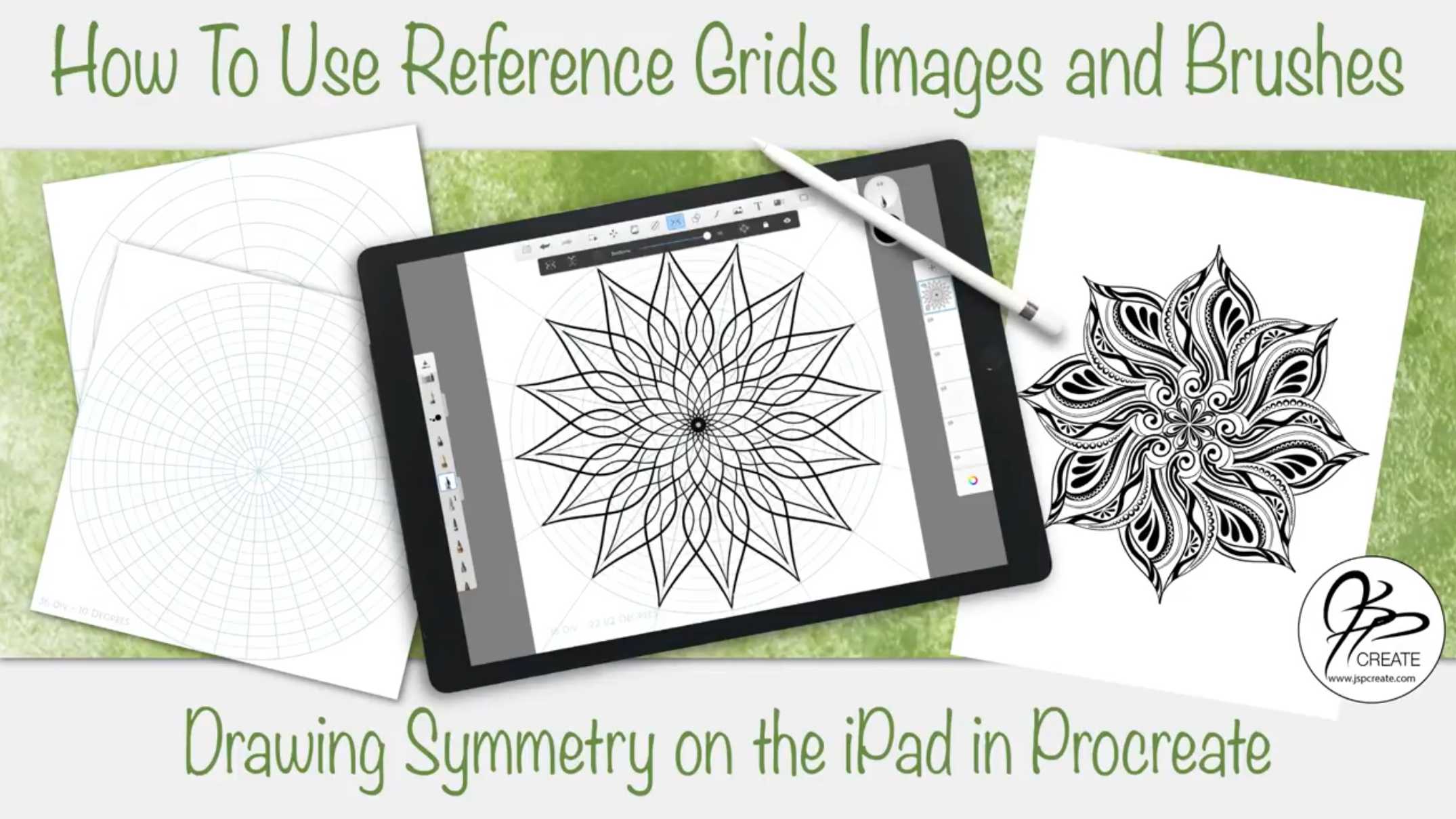 Drawing in Symmetry in Procreate has become so fun and easy to do on the iPad. Drawing apps are adding more and more new and exciting symmetry tools. I have always enjoyed using reference grids when drawing my symmetrical pen and ink drawings. So now I have made these same grids digital and use them as reference guides when creating my digital drawings. In this post I will share how I use my radial grids as references in Procreate on the iPad.